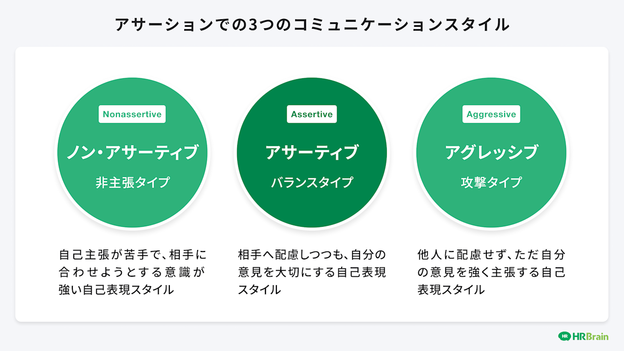 アサーショントレーニングでのコミュニケーションスタイルは、3つに分類されます。