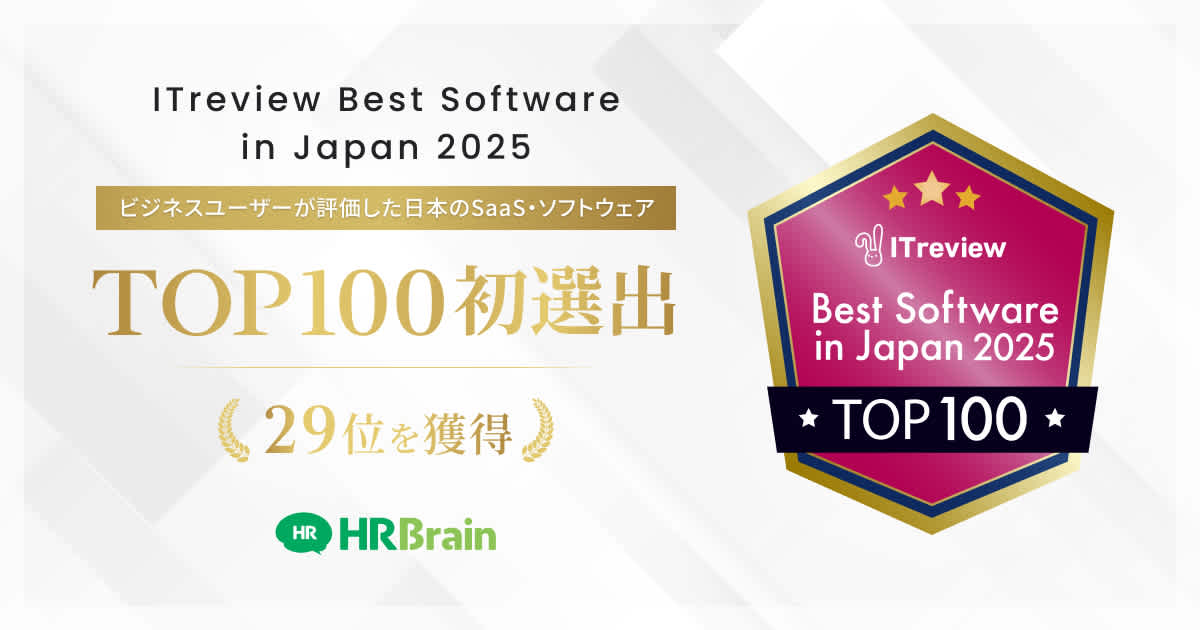 「HRBrain」がビジネスユーザーが評価した、日本のSaaS・ソフトウェア「ITreview Best Software in Japan 2025」TOP100にて29位に初選出